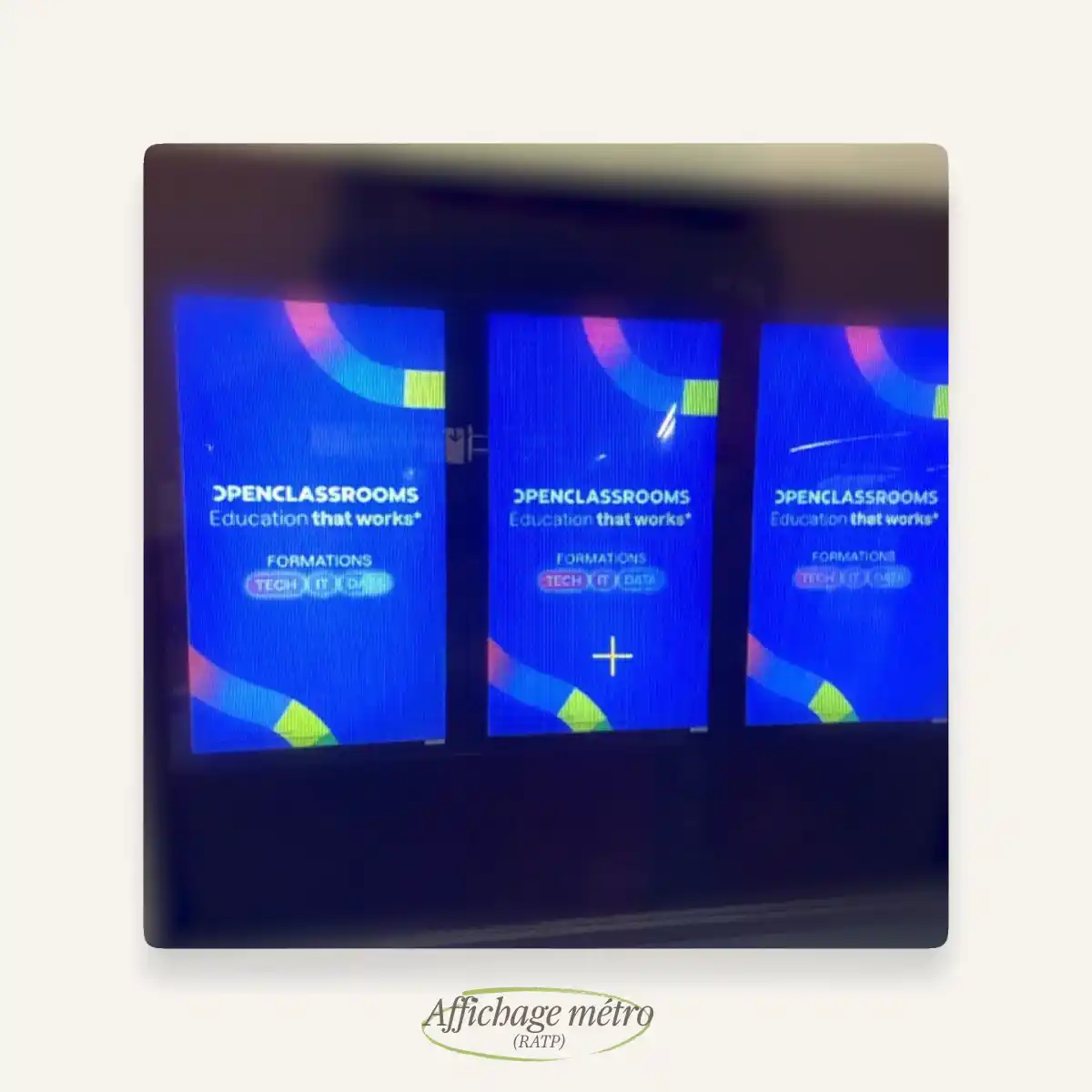De l'écran au métro parisien : une campagne publicitaire multicanale pour OpenClassrooms, alliant motion design dynamique et affichages urbains grand format.