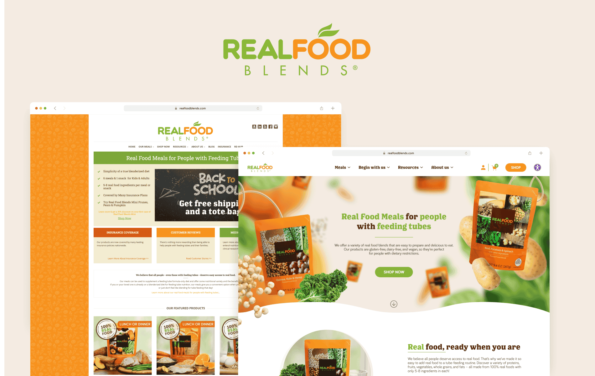 Repensée pour être plus humaine, plus fluide et plus vivante, l a nouvelle landing page de Real Food Blends modernise l’expérience utilisateur tout en renforçant l’identité bienveillante de la marque.