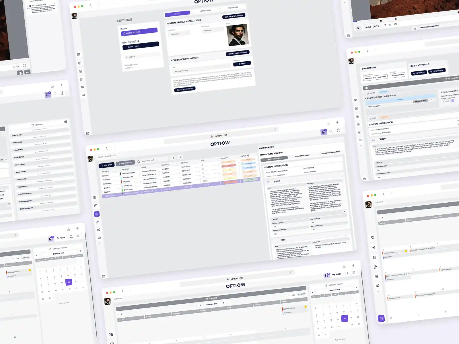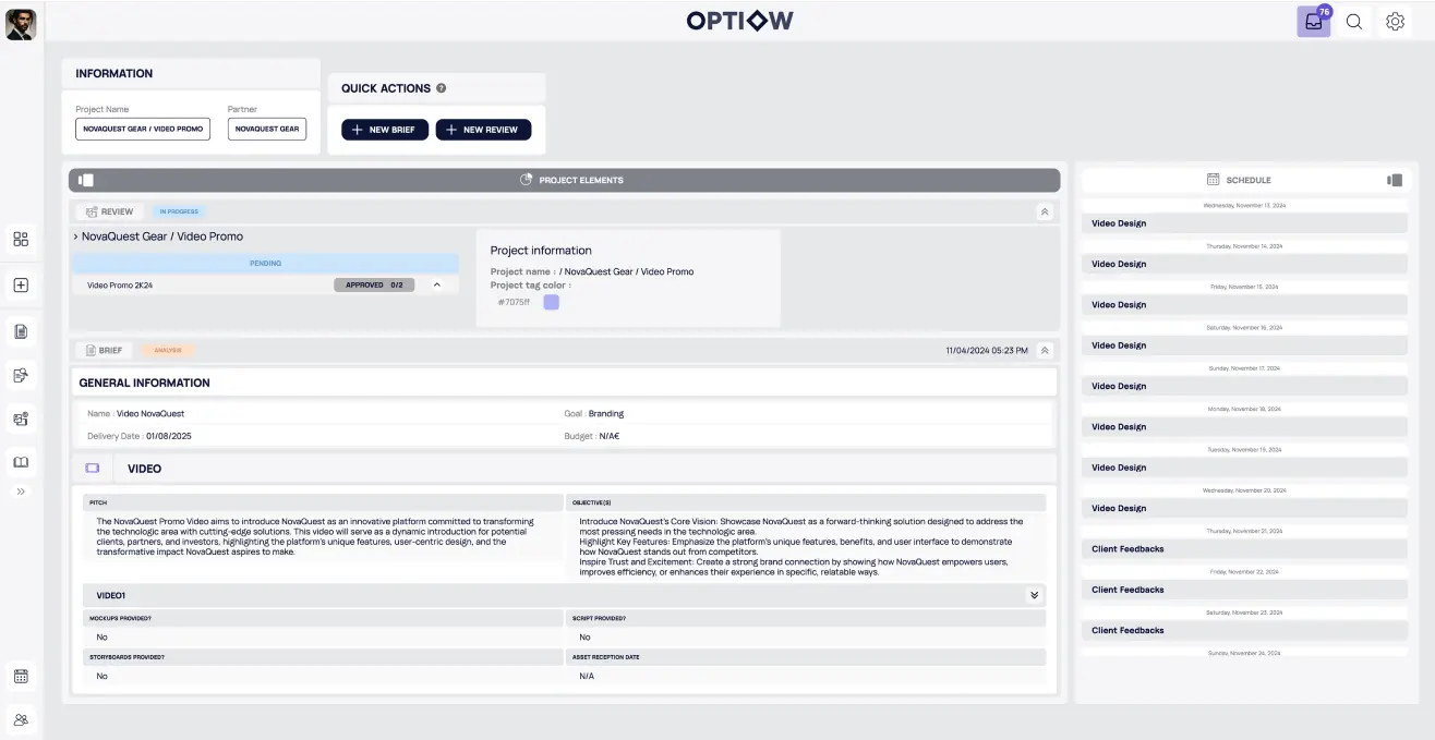 Optiow est une plateforme conçue pour optimiser le pilotage et l’analyse de projets en temps réel. L’enjeu : créer une interface claire, fluide et intuitive, pensée pour les équipes marketing et les agences, au cœur d’un outil à forte dimension fonctionnelle.02. Mon rôle